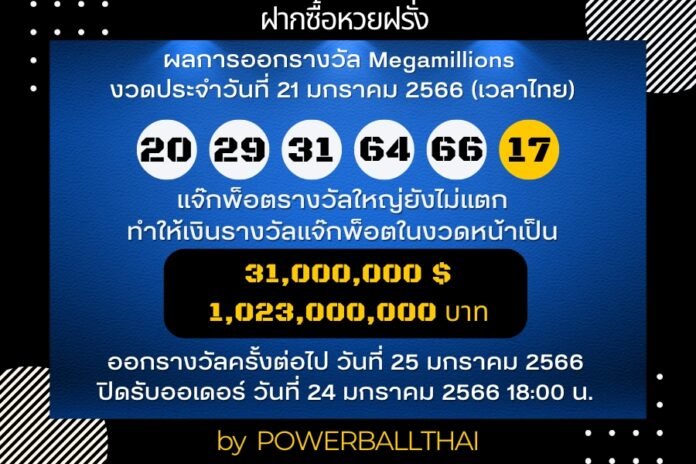ผลการออกรางวัล MEGAMILLIONS ประจำงวดวันที่ 21 มกราคม 2566