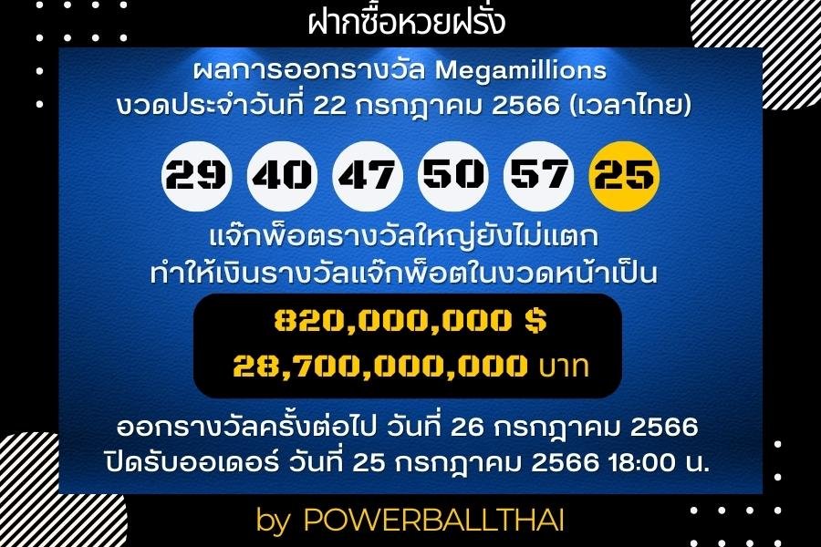 ผลการออกรางวัล MEGAMILLIONS ประจำงวดวันที่ 22 กรกฎาคม 2566
