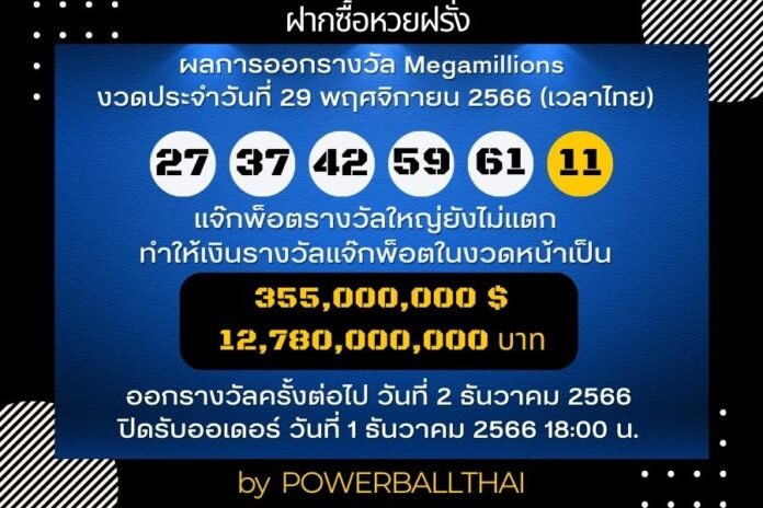 จะทำการออกรางวัล MEGAMILLIONS ครั้งต่อไปในวันที่ 2 ธันวาคม 2566