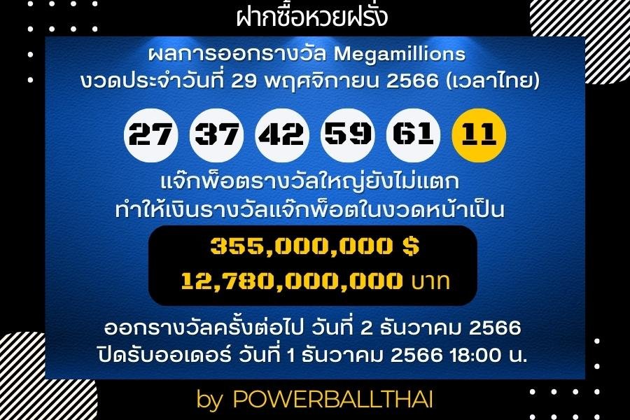 ผลการออกรางวัล MEGAMILLIONS ประจำงวดวันที่ 29 พฤศจิกายน 2566