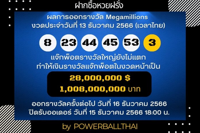 ผลการออกรางวัล MEGAMILLIONS ประจำงวดวันที่ 13 ธันวาคม 2566