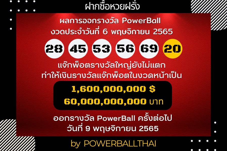 ผลการออกรางวัล POWERBALL ประจำงวดวันที่ 6 พฤษจิกายน 2565