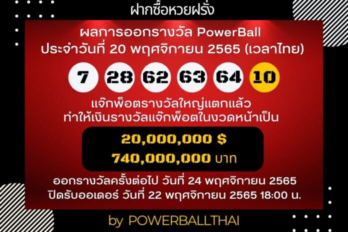 ผลการออกรางวัล POWERBALL ประจำงวดวันที่ 20 พฤศจิกายน 2565