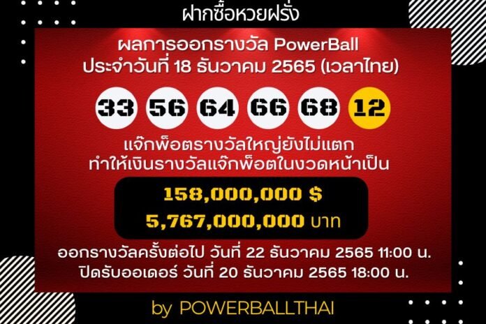 จะทำการออกรางวัล POWERBALL ครั้งต่อไปในวันที่ 22 ธันวาคม 2565
