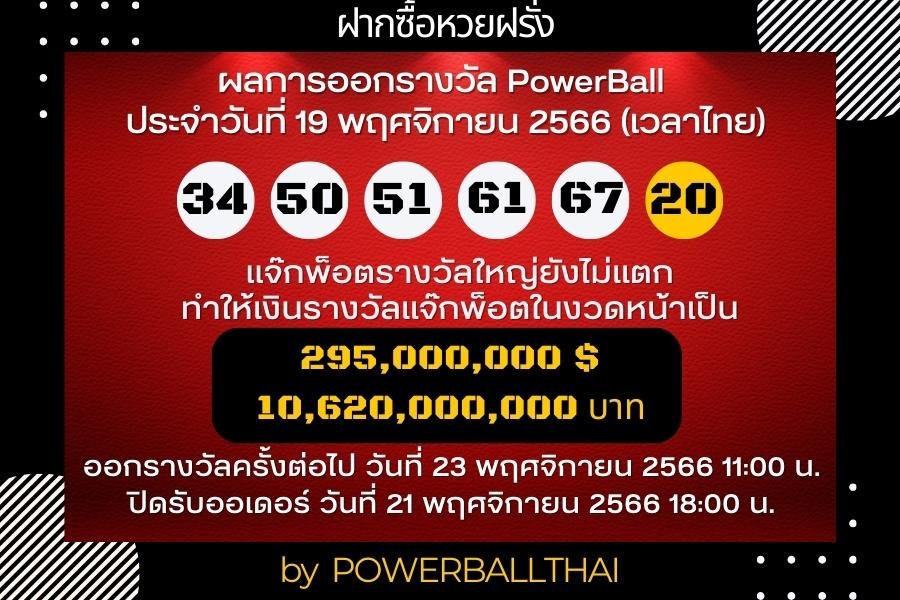 ผลการออกรางวัล POWERBALL ประจำงวดวันที่ 19 พฤศจิกายน 2566