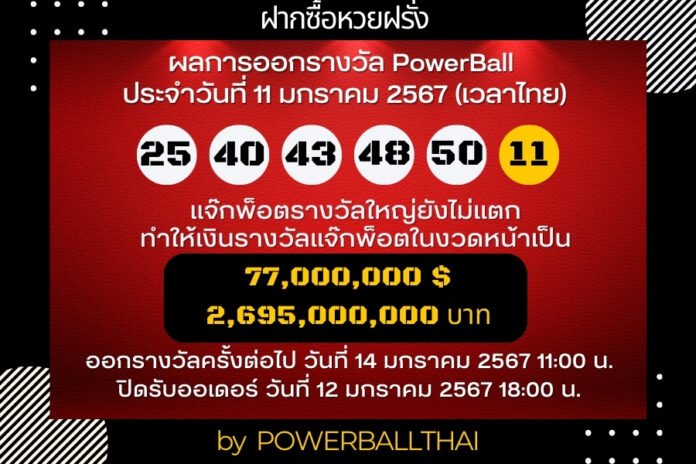 ผลการออกรางวัล POWERBALL ประจำงวดวันที่ 11 มกราคม 2567