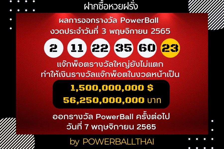 ผลการออกรางวัล POWERBALL ประจำงวดวันที่ 3 พฤษจิกายน 2565